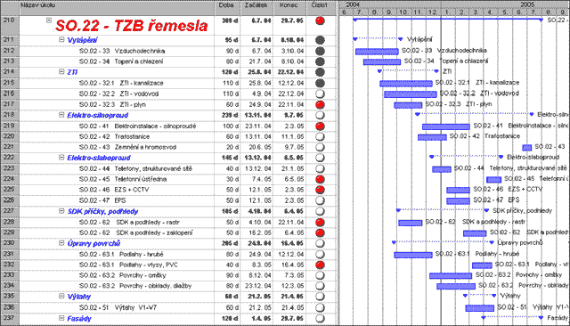 Máme praktické zkušenosti s využitím programůMS Project, Primavera, SureTrak, SuperProject, Pertmaster, Spider, TimeLine, známe přednosti a nedostatky systémů Artemis, Open Plane, Power Project, Contec a dalších.