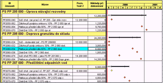 - je možné sumarizovat činnosti do balíků dle jakéhokoliv kritéria